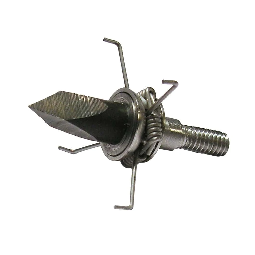 The Muzzy SG-X Small Game Head is a stainless steel head designed specifically for small game. It features a replaceable Trocar tip, spring loaded arms and a stainless steel body. The spring loaded arms prevent your arrow from burying in grass or dirt and the Trocar tip devastates flesh and bone.